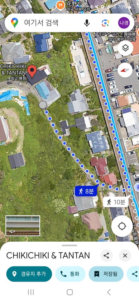 그런데 아주 좁은 골목 샛길로 루트가 떴고