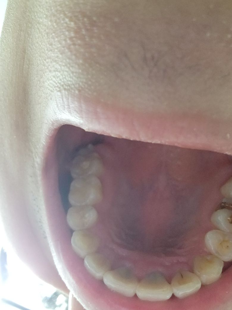 앞니의 검은 실선이 보이는데 충치일까요?