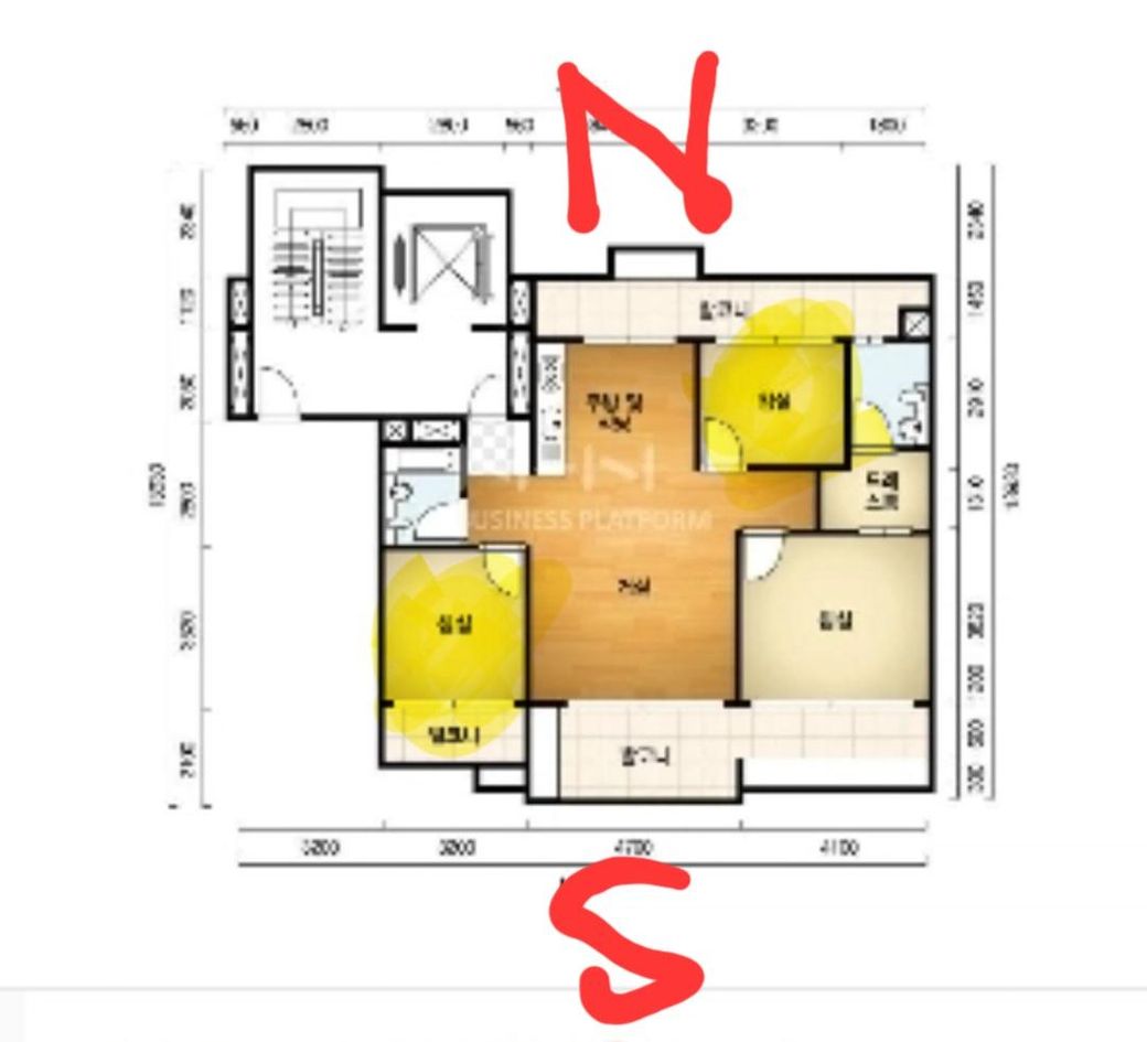 노란색으로 표기된 작은방