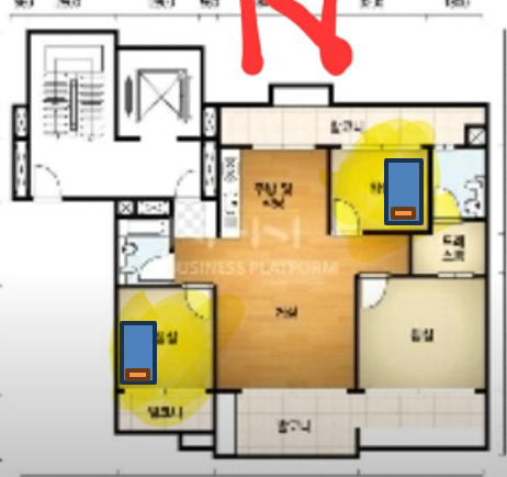 문과 침대머리에 위치만 보시면되요^^