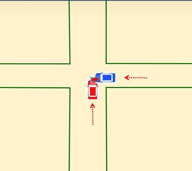 이 상황에서 제 차가 빨간 차이고, 상대방 차가 파란 차 입니다.