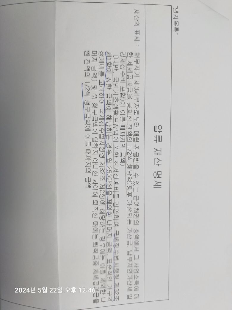 [국세청 급여압류문의] 민사집행법 급여압류 최저생계비와 국세청 압류 최저생계비가 다른가요?
