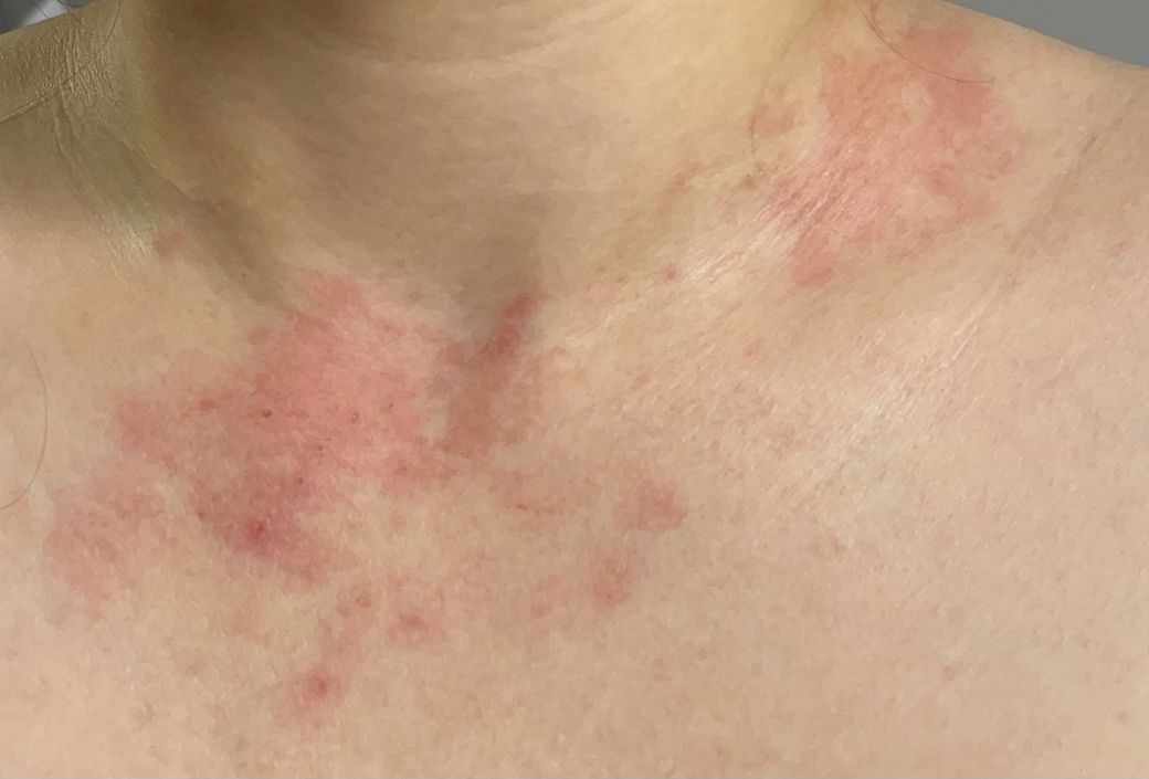처음에는(이틀전쯤?) 쇄골 밑에 간지러워서 계속 긁었 는데 오늘 보니까 목 옆에도 번진 거 같은데 만지면 따가 워요ㅠㅠ 쇄골 밑에도 간지럽고 따갑구요ㅠ 뭘까요..?
