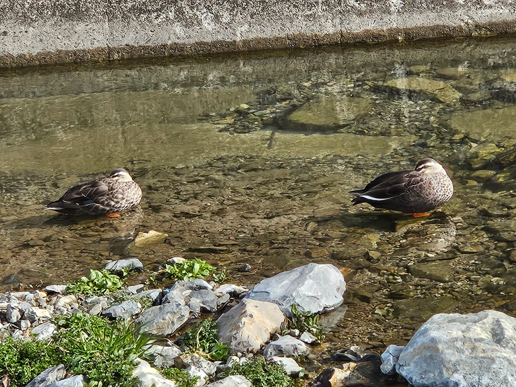 오늘 무학산 등산로 계곡에 흰뺨검둥오리들이 고개를 저렇게 돌려서 멈춘 것 같이 일정시간 저런 자세를 계속 취하다가 앞에 한 마리가 잠깐 얼굴을 돌려보다가 다시 저 자세를 계속 취하던데 평상시에 보던 흰뺨검둥오리의 모습에서 못 보던 거라 궁금해서 질문합니다.