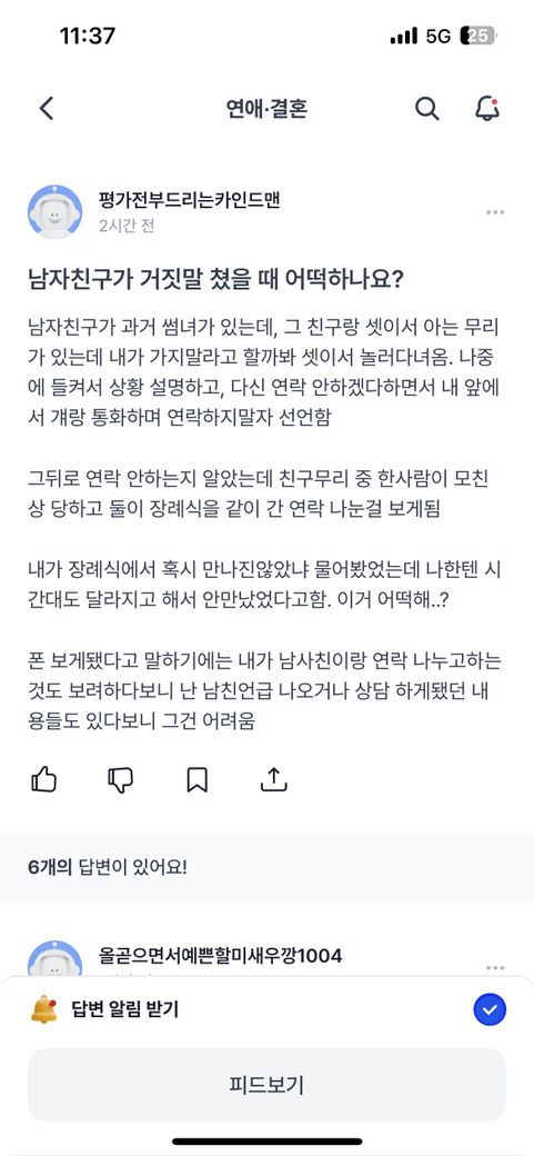 (후기포함) 남자친구가 거짓말 쳤다고 질문 올렸던 사람인데요
