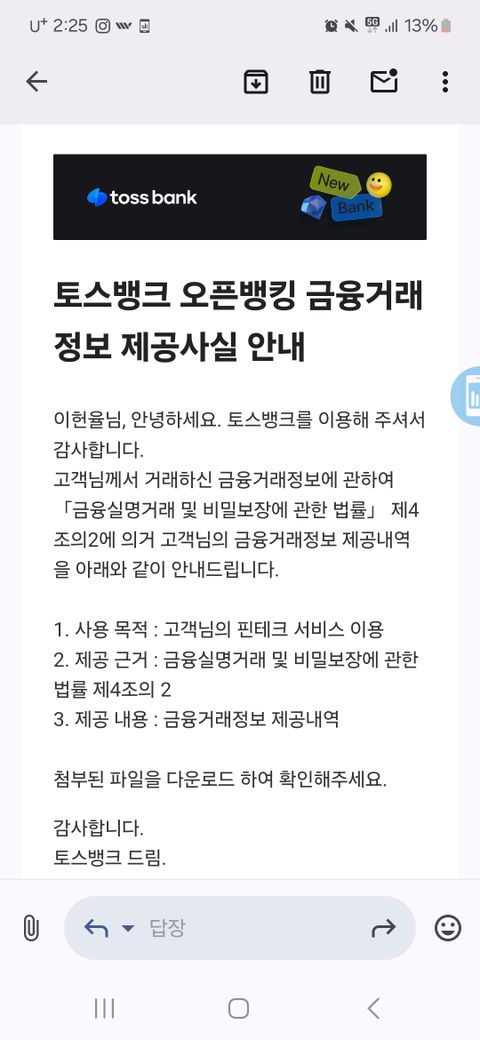 (토스뱅크 오픈뱅킹 금융거래 정보 제공사실 안내) 이게 뭔가요?