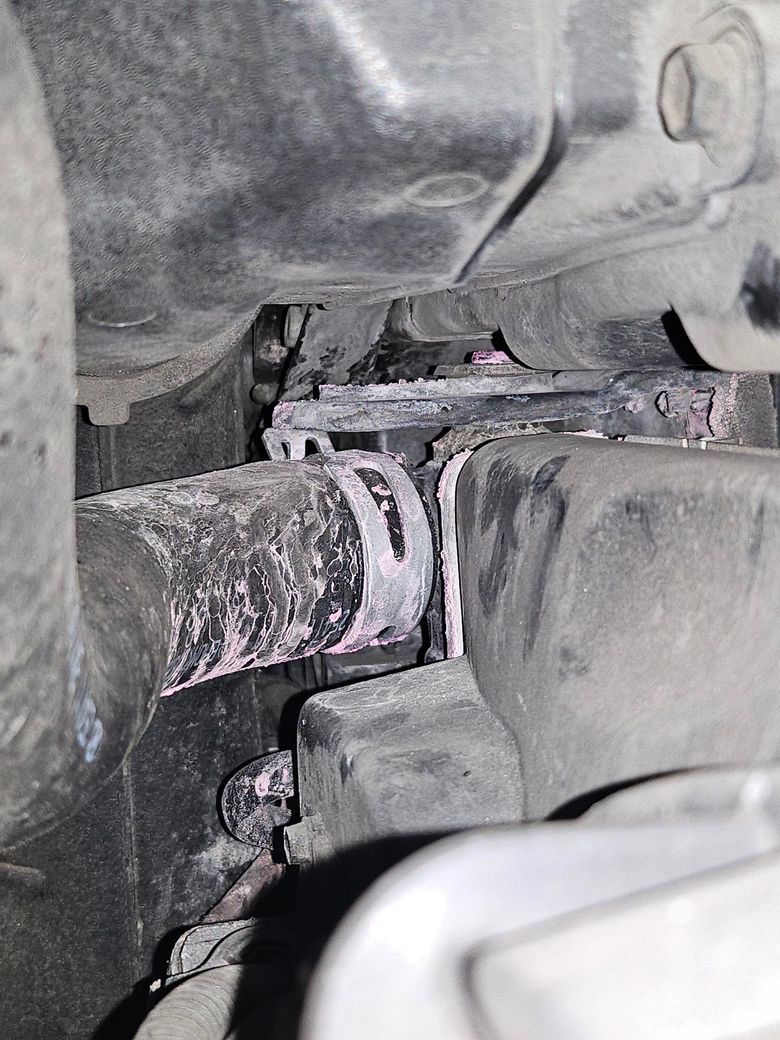 사진상 분홍색이 부동액 자국이라고 들었고, 보조통?은 비어있는 상태라고 했습니다.
