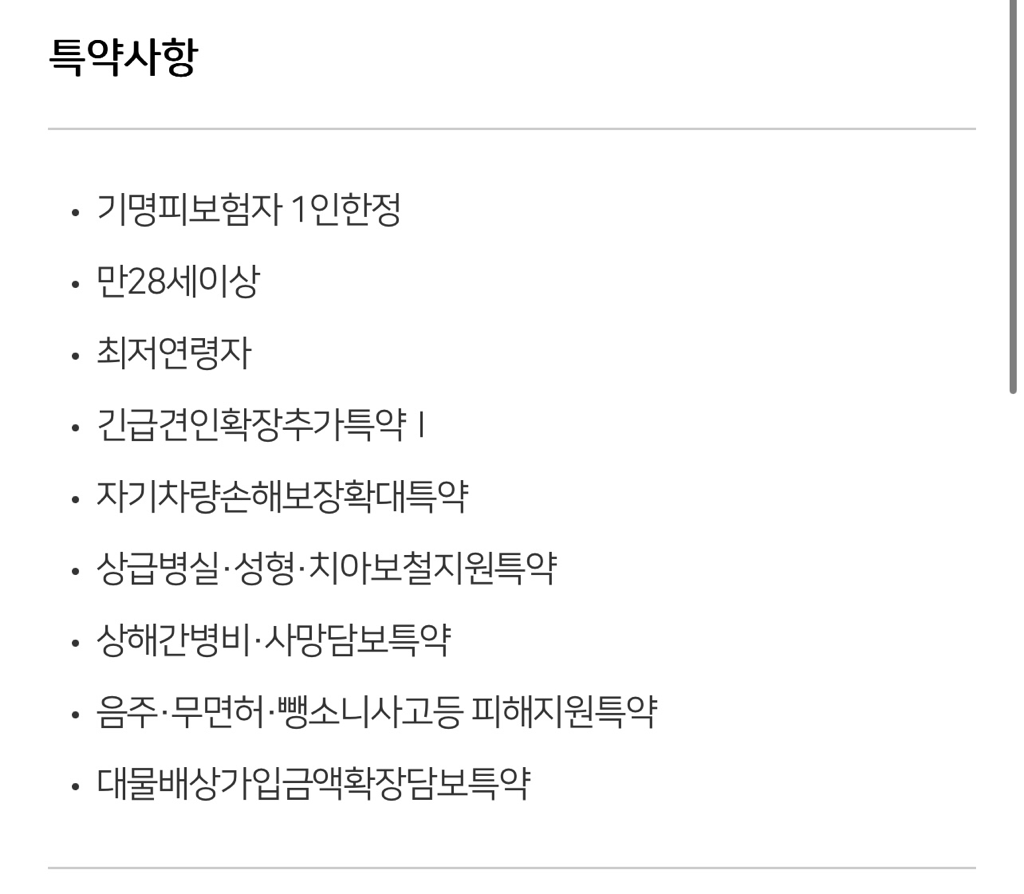 대인1제외하고 모든담보는 면책입니다.