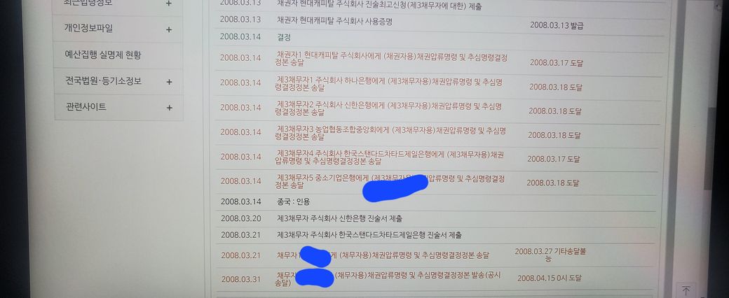 민사소송2008년3월에 채권소송 현대캐피탈이 했고요