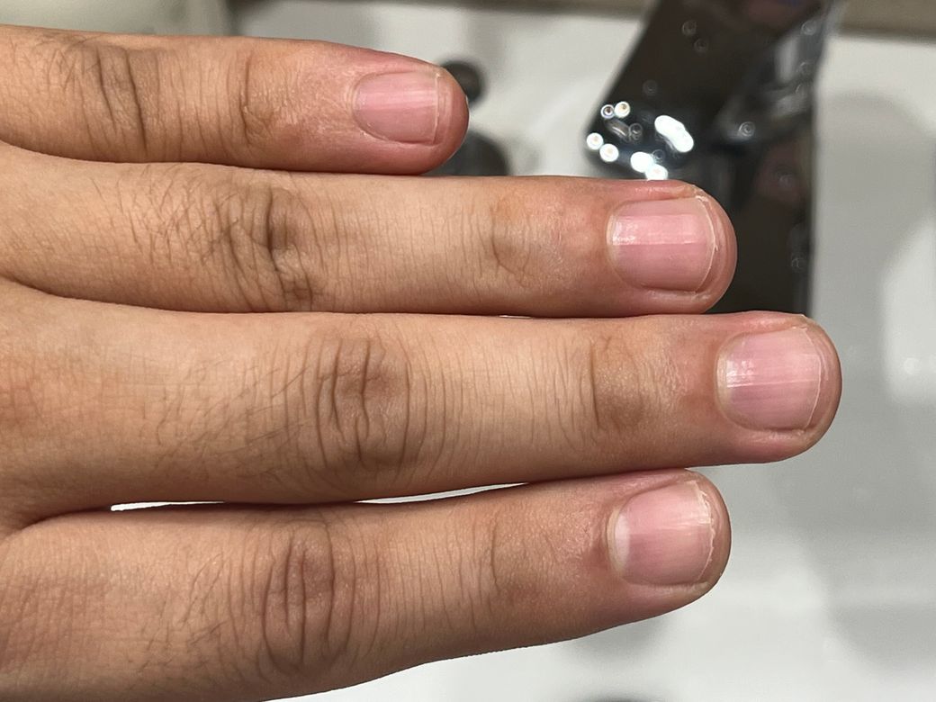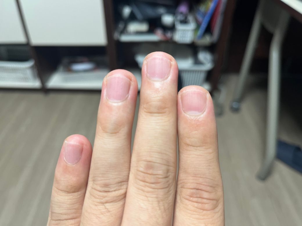 올리신 사진들을 토대로 보았을 때에는 딱히 손톱 부위가 보라색으로 보이거나 하지 않아 보입니다. 분홍색 양상을 띄고 있으며, 딱히 문제가 있을 것이라고 볼만한 부분이 크게 있어 보이거나 하지는 않아 보입니다. 사진들만 보았을 때에는 문제가 있어 보이지 않습니다.