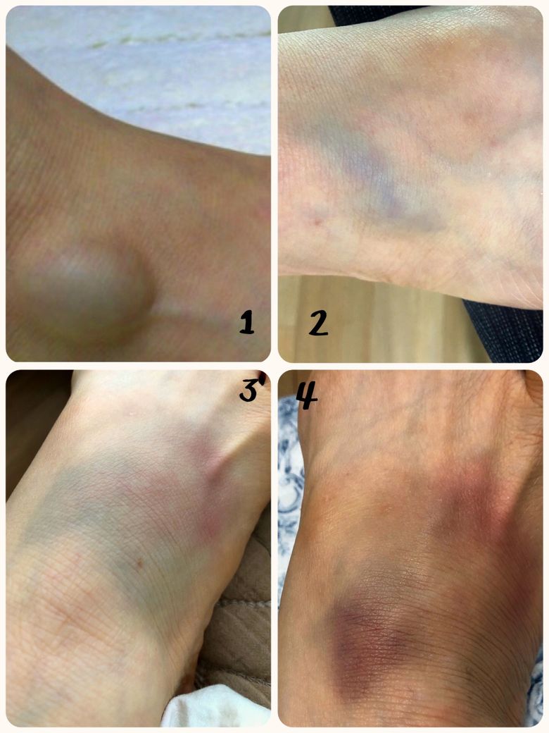 하루가 지나니 사진 2,3,4와 같이 멍이 들었습니다