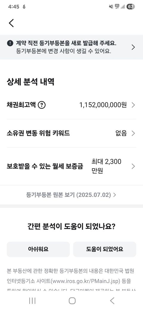 3000/25 월세집 보호금액 2300 인데 조심해야 하나요?