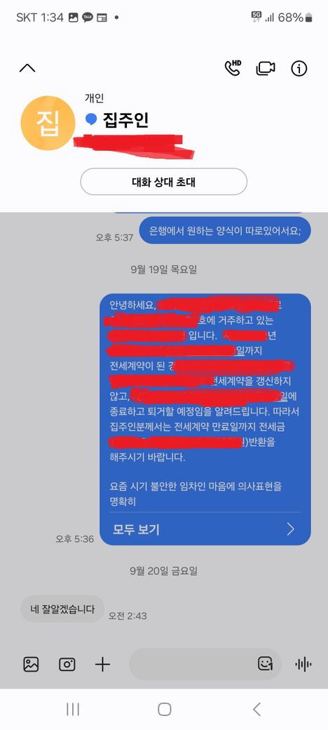 상단 집주인분 전화번호는 전세계약서에 있는 집주인 전화번호와 동일합니다