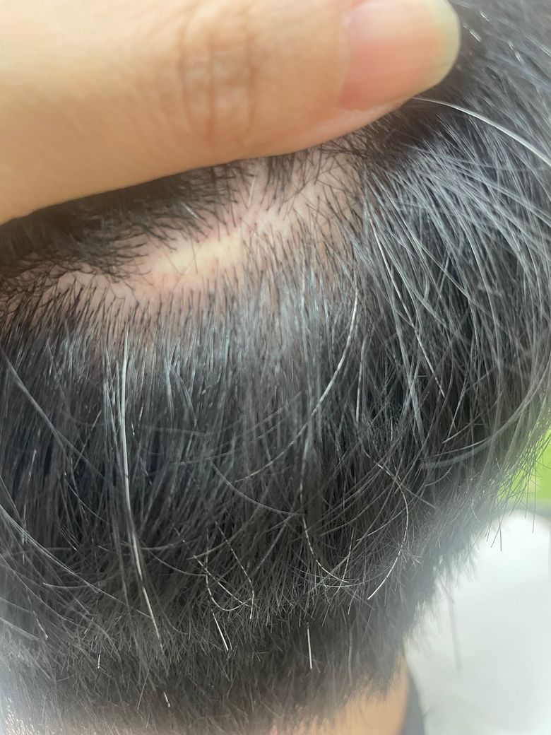 해당부위는 탈모라고 보기는 어렵고 어릴때 다친 부위가 모근이 소실되어 그럴수도 있고 다른 원인으로 두피의 모근이 회복불가능의 상태가 된것 같네요 일부분이기 때문에 더이상 확장되지 않을것으로 보입니다