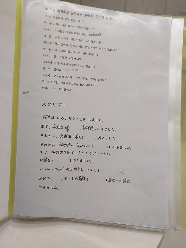 7번은 시험공부 ~ 친구집에 갔다 이렇게 되어있으니 '를 하러'에 해당하는 をしに가 될거같네요