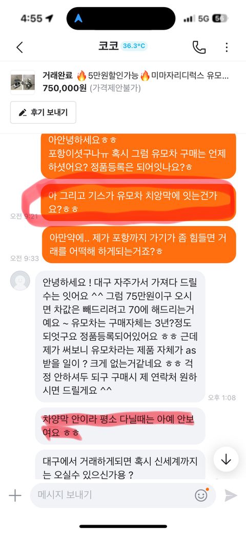 계약금 입금 뒤 사진을 보내줬는데 게시물에 잇던 사진들 사이 게시물에 없던 사진이 잇엇고 그 사진으로 정확한 하자 위치를 확인함.