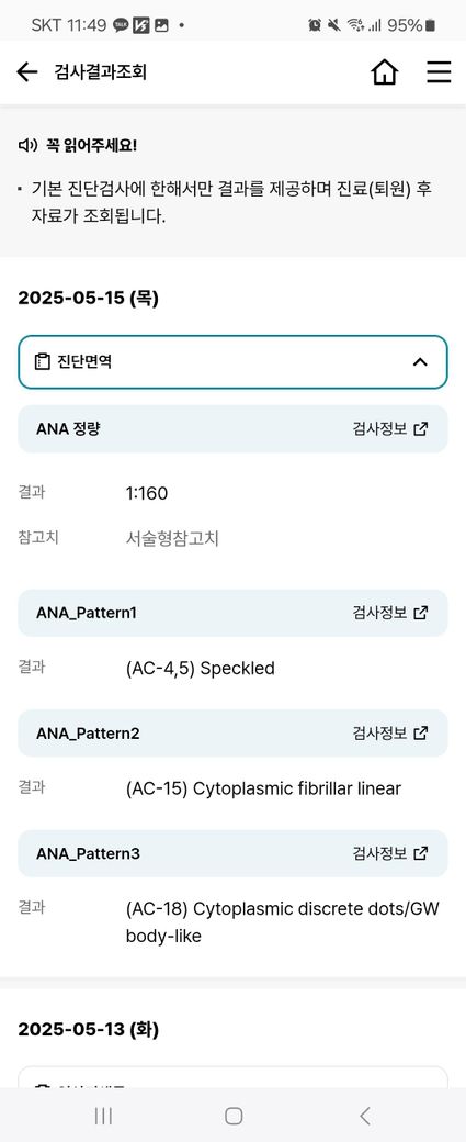 그러나 일반인에서도 5%정도는 양성으로 나올 수 있으며 실제 자가면역질환을 가진 경우는 1%정도로 추가적 검사에 대해 상담을 받으시기 바랍니다.