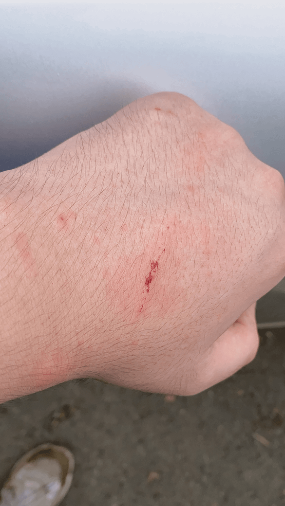 지금은 피는 다 닦이고 대충 흉터만 저 모양으로 있습니다