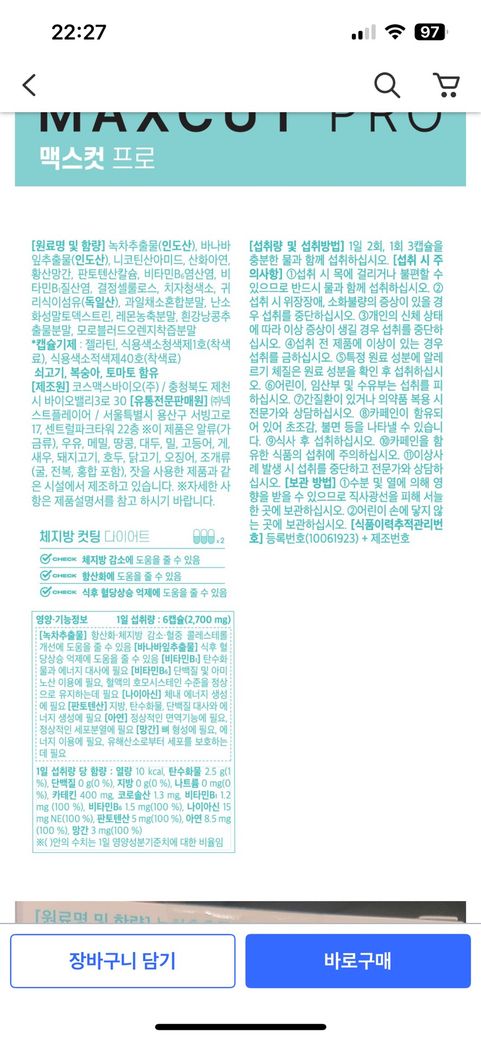 맥스컷 프로라는 건강보조식품을 복용중인데요,