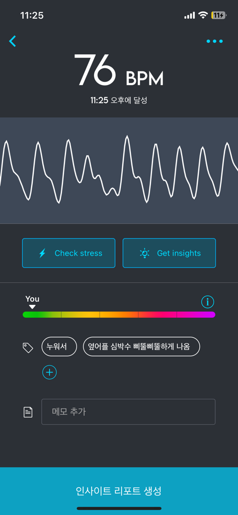 저 어플에 파형이 한 3번정도 나오면 그전 심박수로 돌아갑니다.