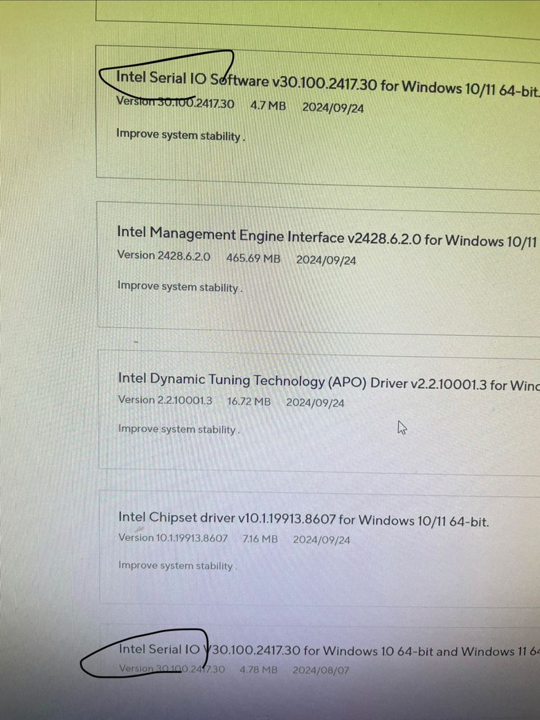 메인보드 칩셋 Serial IO software 하고 그냥 Serial IO가 있는데 어떤거 다운 받으면 되나요? 알려주실분 구합니다