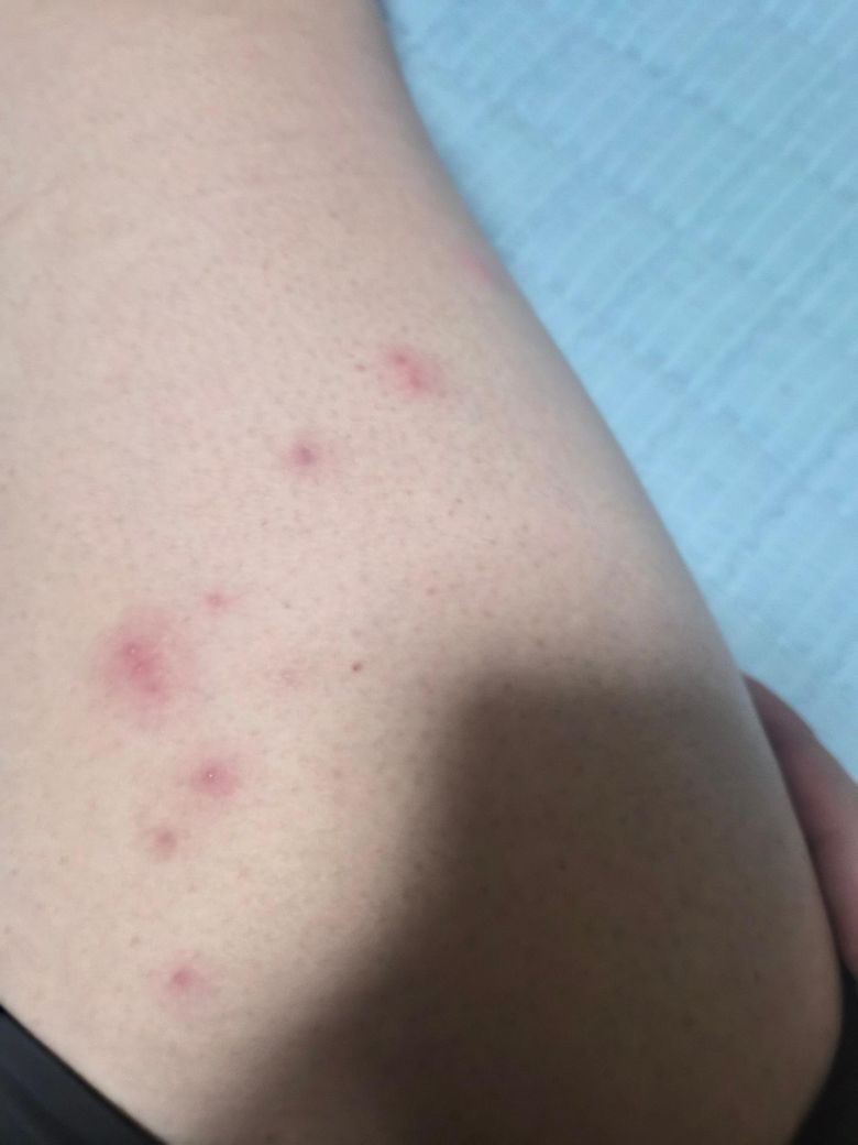 허벅지 쪽인데 금요일날에 샤워하고 보려니 사진처럼 뭐가 막 났는데 이것 때문에 아프지는 않은데 신경이 쓰이고 이렇게 많이 난건 처음이라 당황 스럽거든요. 이거 괜찮을까요?