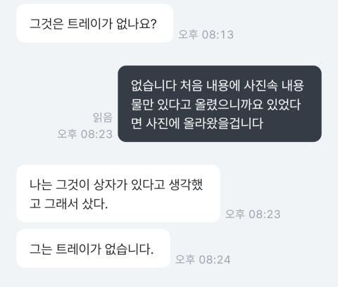 트레이가 없는 사진을 찍어서 게시하셨어야 분쟁의 여지가 없었을텐데 하는 아쉬움이 남네요.