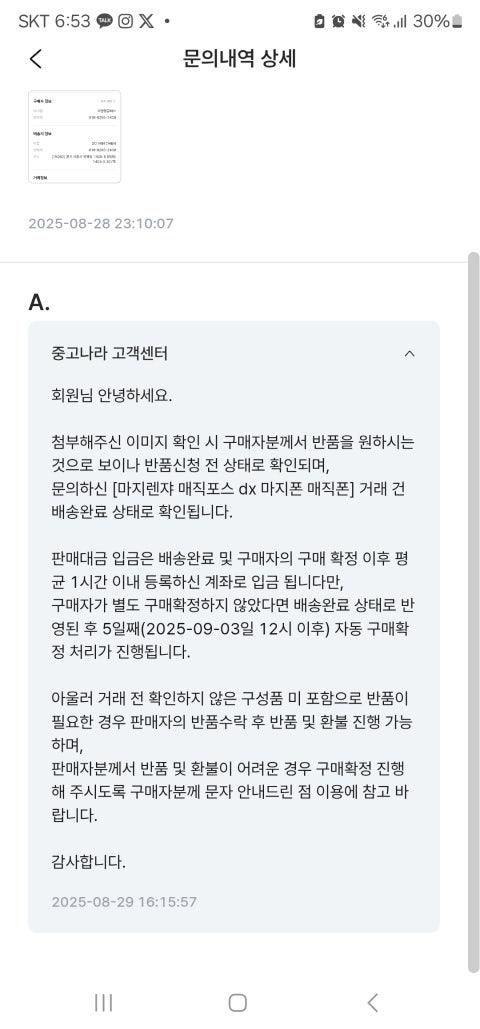 4.중고나라에 문의한 결과 마지막 사진처럼 왔습니다