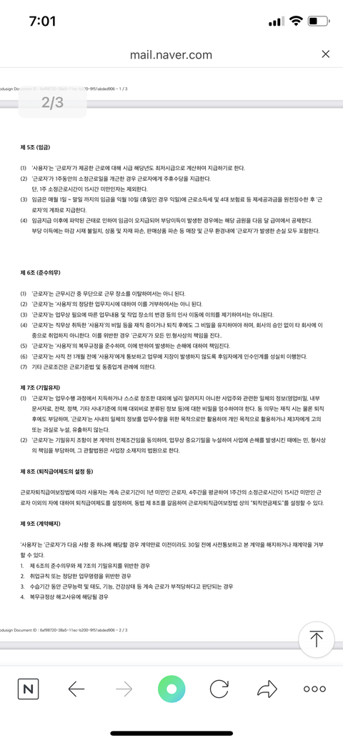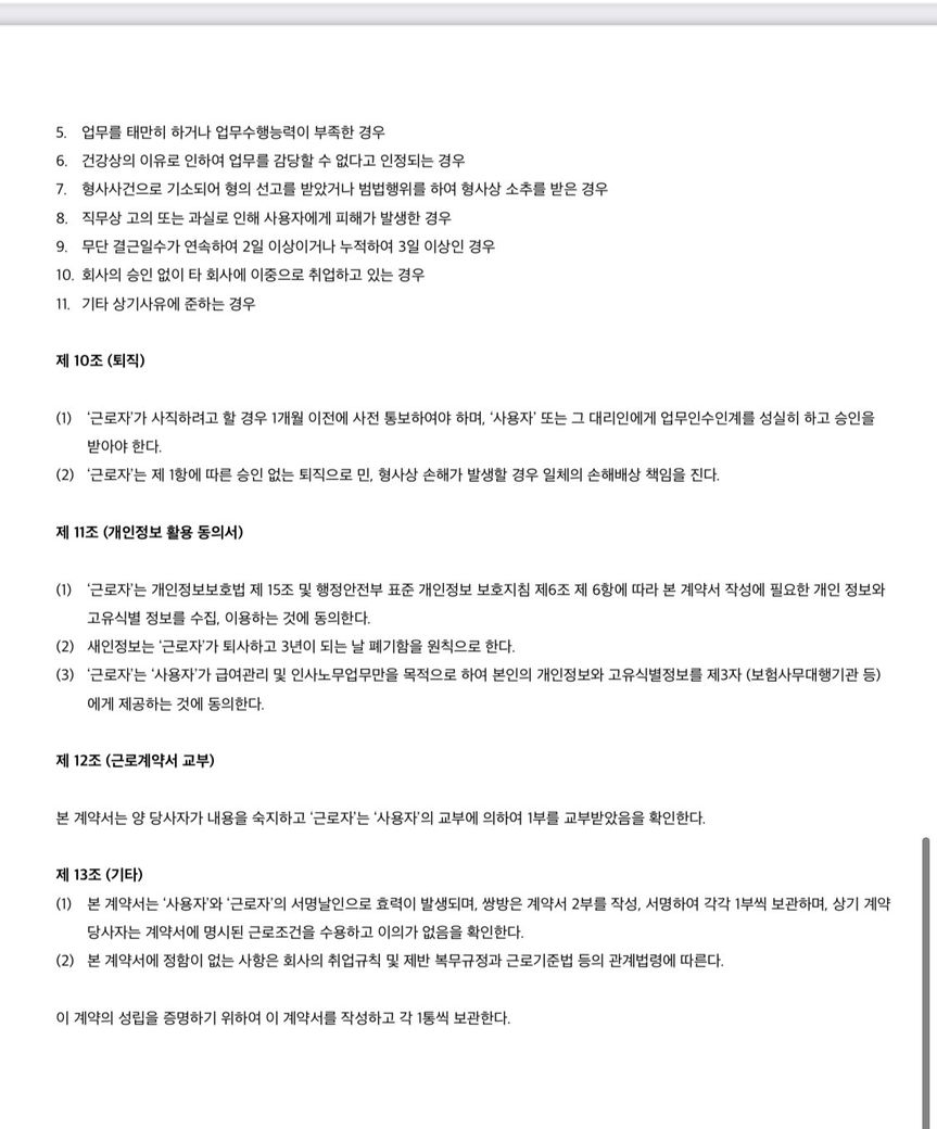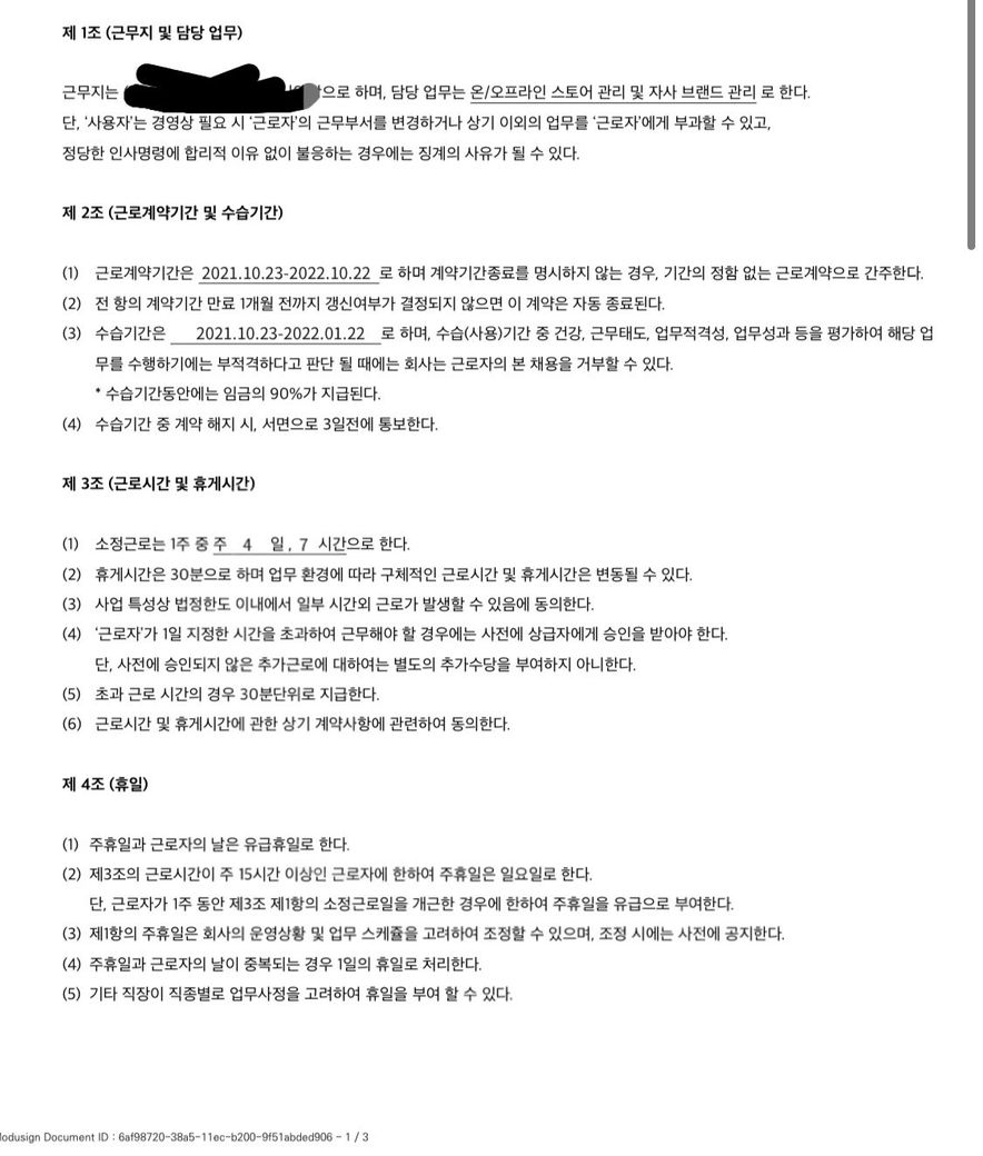 *현재 아르바이트의 근로계약서입니다
