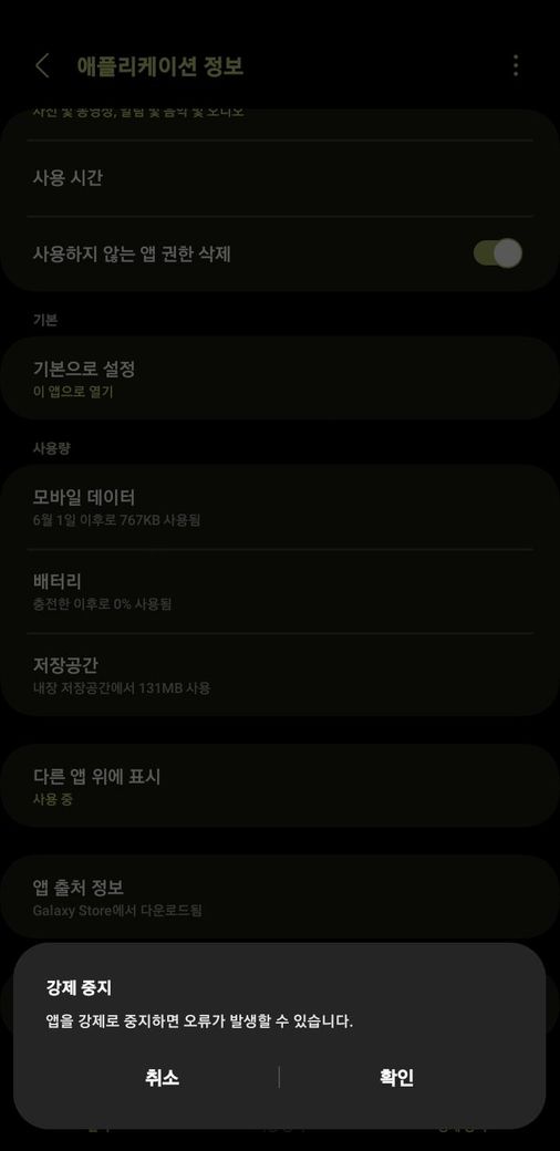 앱을 강제로 중지하면 오류가 발생할 수 있습니다.