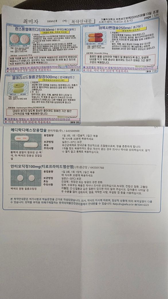 친정 어어니가 헬리코박터균 약 복용중 미열과 마른 기침 합니다.