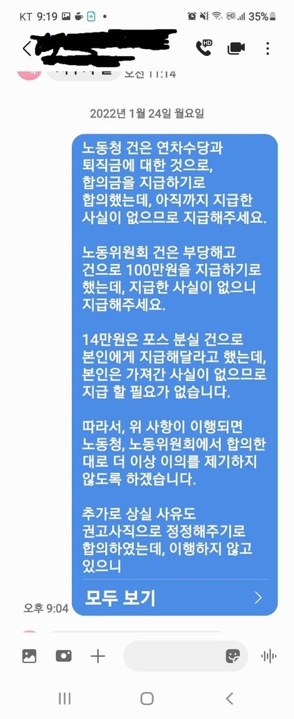 현재 임금체불 관련하여 합의했는데, 합의금을 보내주지 않아 아래 사진과 같이 문자를 보냈습니다.