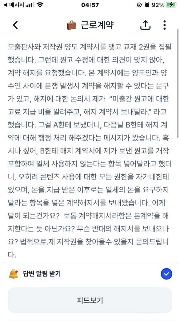 저작권 양도 계약서 해지에 관한 문의사항