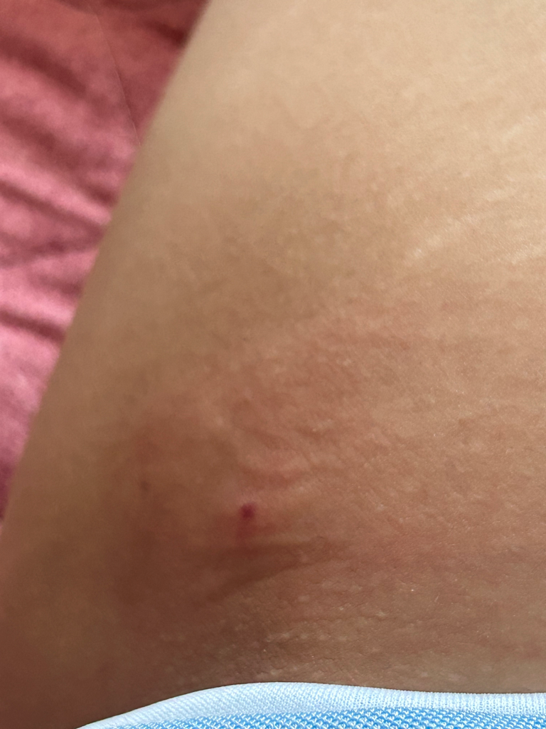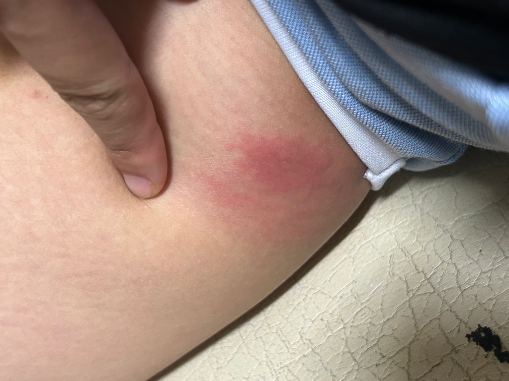 곤충에 쏘이거나 물렸을 가능성을 생각해볼 수 있겠는데 그렇다면 알레르기약을 복용하며 경과를 지켜볼 수 있습니다. 나아지지 않으면 피부과를 내원하셔야 하겠습니다.