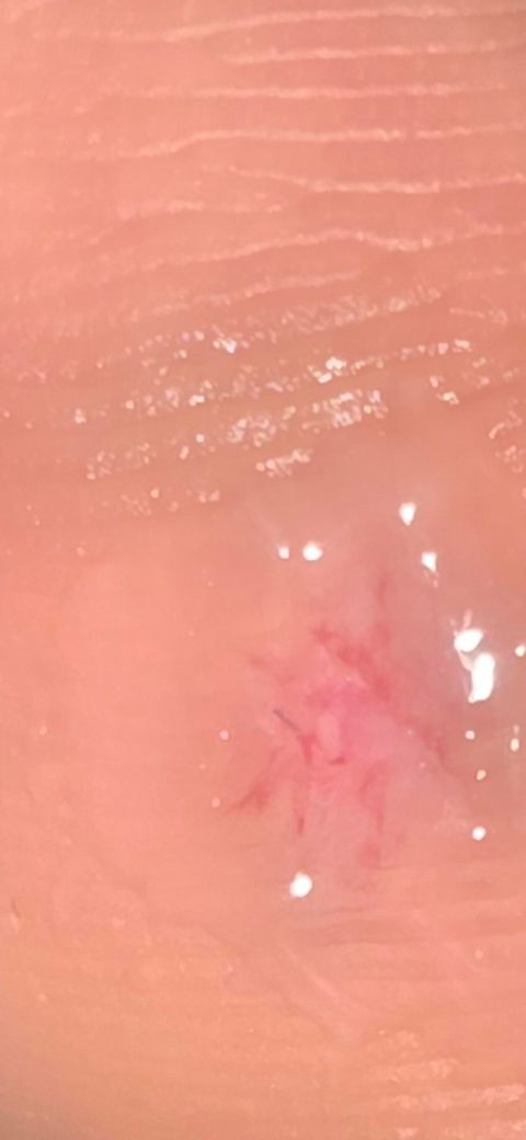 병태생리적으로 보면, 피부 안에 박힌 털을 제거하는 과정에서 진피 상부 혈관이 손상되면 국소 출혈이 발생하고, 이후 피가 응고되면서 검붉은 선 또는 점 형태로 보일 수 있습니다. 특히 발가락은 각질층이 두껍고 마찰이 많은 부위라 이런 소견이 더 뚜렷하게 보일 수 있습니다.
