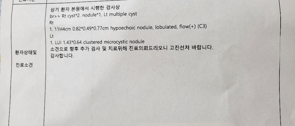 유방에 의심스러운 병변이 보일 때는 유방촬영과 유방초음파가 가장 기본이 되는 검사입니다. 한 쪽의 검사가 다른 한 쪽의 검사를 완전히 대체할 수 없기 때문에 반드시 필요한 검사라고 할 수 있습니다.
