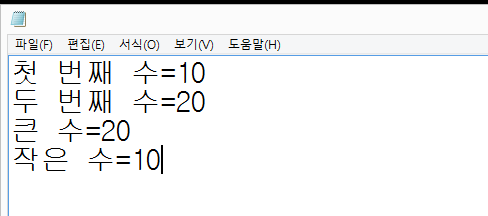 - #include <stdio.h> int main(void){ int x, y; printf("aa="); scanf("%d", &x); printf("\nbb="); scanf("%d", &y); printf("\naa = %d \n",(x>y)?x:y); printf("bb = %d \n",(x<y)?x:y); return 0; }