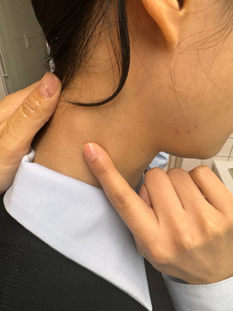 주말에 목감기가 약하게 왔습니다. 그 뒤로 목 옆 쪽 근육 쪽에 아주 미세하게 동그란 게 튀어나와있는 느낌이 나는데요..제가 손가락 가르키는 곳에 미세하게뭐가 튀어나와있는 느낌입니다. 림프절이 부은 것일까요? 그 전까진 피곤하면 턱 바로 밑에 림프절이 부었었는데 이건 만지면 아프고 움직이고 그랬었어요 근데 근육 쪽에 약간 튀어나온건 만져도 아프진 않습니다.. 시간을 두고 지켜봐도 될까요?