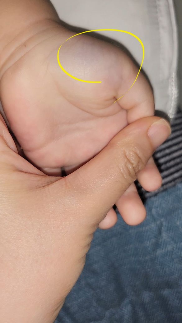 사진에 보이는 동그라미 부분은 혈관이거나 단순한 피부 색소 변화일 가능성이 큽니다. 아이의 피부는 얇고 투명하여 혈관이 잘 보일 수 있으며, 특히 빛을 비추거나 압력을 가하면 더욱 두드러질 수 있습니다. 소아과 진료 시 특별한 문제가 없다고 하셨고, 의사께서 이상을 발견하지 못했다면 크게 걱정하지 않으셔도 될 것 같습니다.