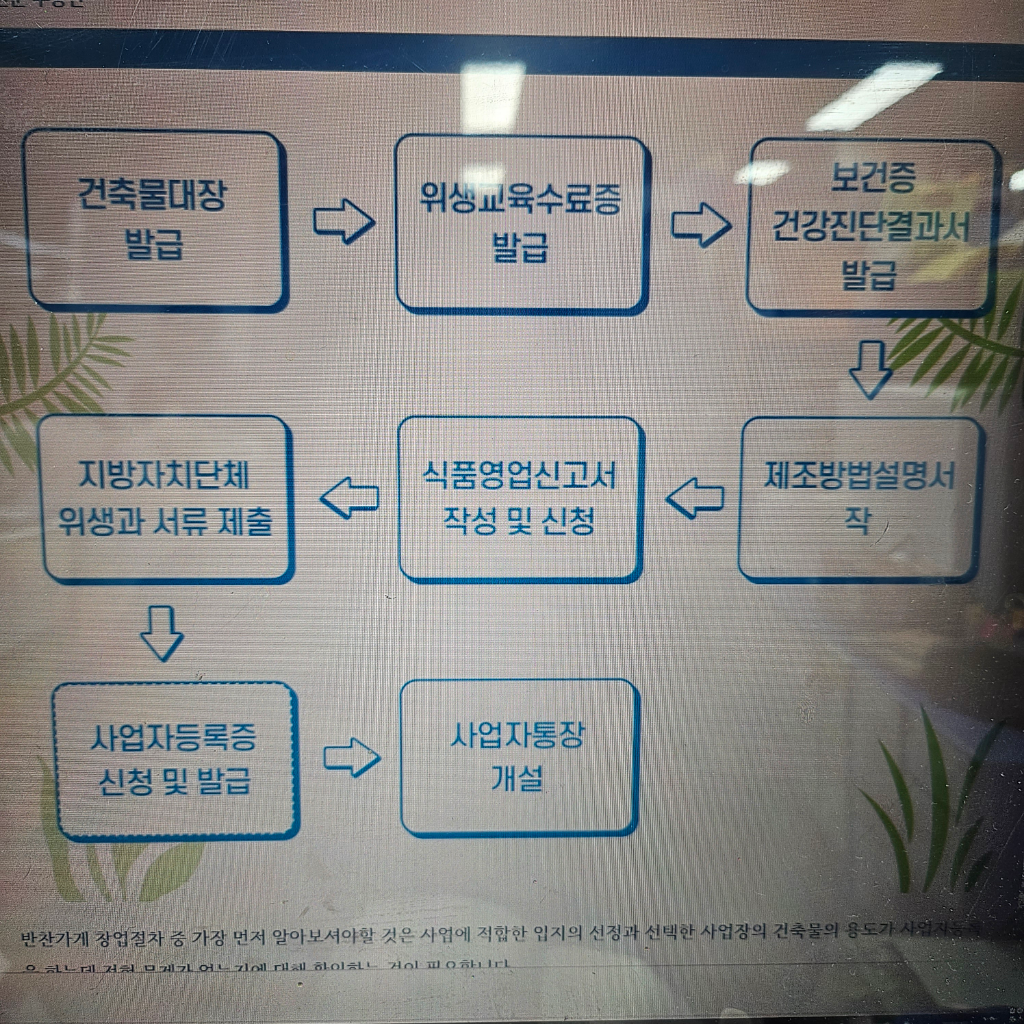 식품을 제조 판매 하기 위해서는 위생 관련 허가 및 관련 교육을 모두 이수한 이후에 허가 신청 후 판매 영업을 할 수 있습니다.
