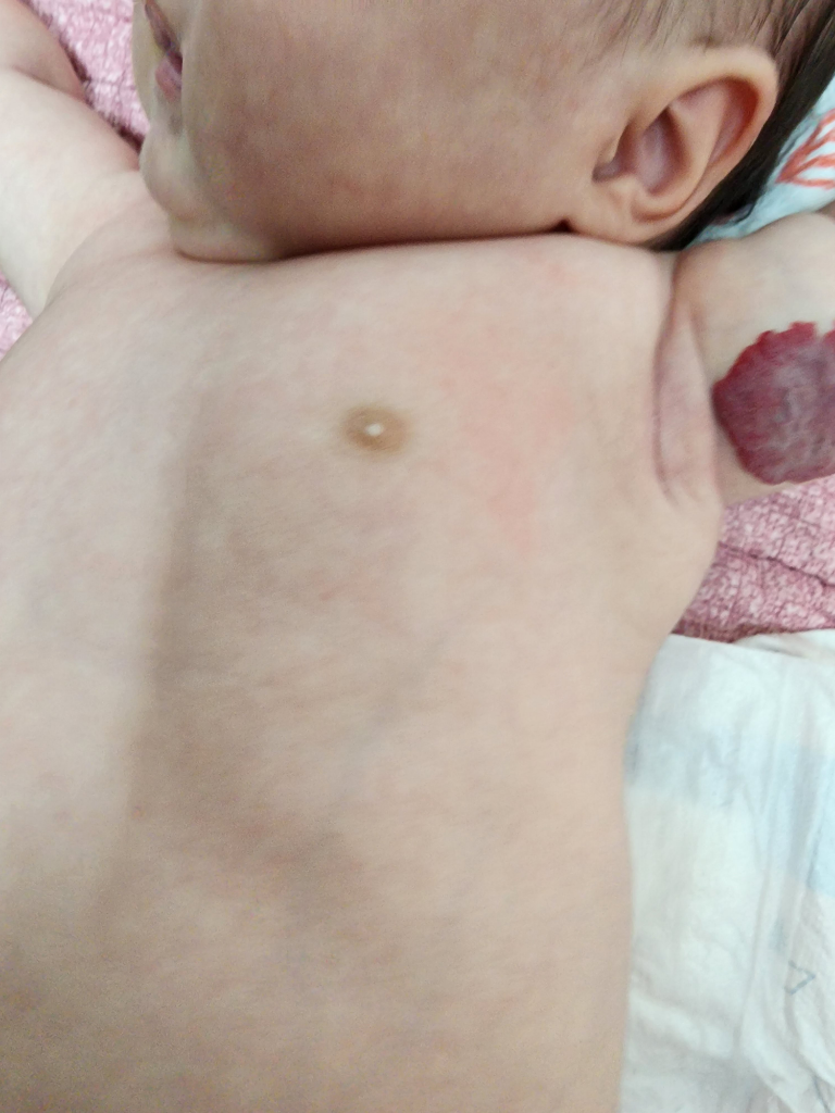 아기 왼쪽 가슴에 난 것은 혈관종 입니다,