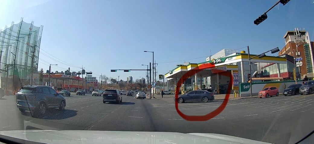 안녕하세요! 다름이 아니라 보복운전 성립여부에 관하여 여쭙고자 문의 드립니다. 상황은 이렇습니다. 제 차는 3차선에서 정상주행 중 이었고 사진에 빨간색으로 체크되어있는 그랜저가 우회전을 하며 제 차선으로 진입하기 전 이었습니다. 삼거리를 거의 건너갈 때 쯤 그랜저가 서행을 하는 듯 멈추는것같더니 그대로 제 차선으로 들어와서 경적을 1회 울린 후 저는 좌측차선으로 차선을 변경하였습니다. 그 후 제 차는 2차선 상대차는 3차선으로 주행 중 사진에 보이는 신호가 황색신호로 바뀌기 전에 제 차선으로 깜빡이를 틀고 바로 진입을 하였으며 저는 놀라서 급브레이크를 밟게 되고 결국 사거리를 통과하지 못하였습니다. 차에는 4개월 된 아이와 와이프가 타고있었고 와이프와 저는 겁을 먹었습니다. 해당 건이 보복운전으로 성립이 될 수 있는지 답변 주시면 정말 감사하겠습니다.