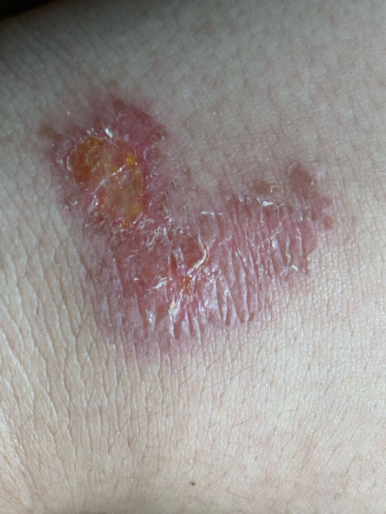 상처에서 약간 짓물 비슷한게 나오고 갈라지는거같애요
