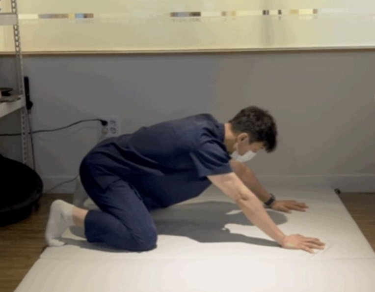 허리 삐끗 후 약간 회복이 되었다면, 저는 개인적으로 허리를 과하게 쓰이는 것을 방지하기 위해 아침에 일어나서(아래사진처럼) 고관절의 움직임을 만들고 산책정도는 할것같습니다.