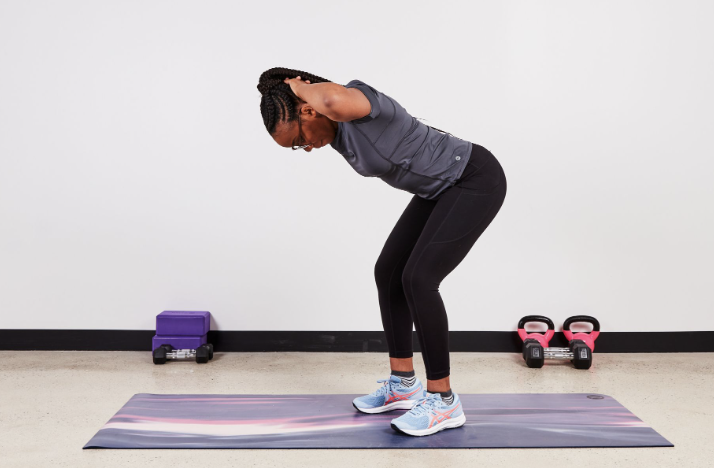 아침에 머리를 감거나 양치할 때 너무 허리를 과하게 숙여도 나중에 허리통증을 유발할 수 있기 때문에 아래 사진처럼 고관절을 접어 머리를 감는것이 좋습니다.