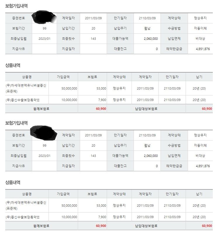안녕하세요. 보험이 너무 많아(월 납입금 50만원가량) 정리 중에 질문 남깁니다.