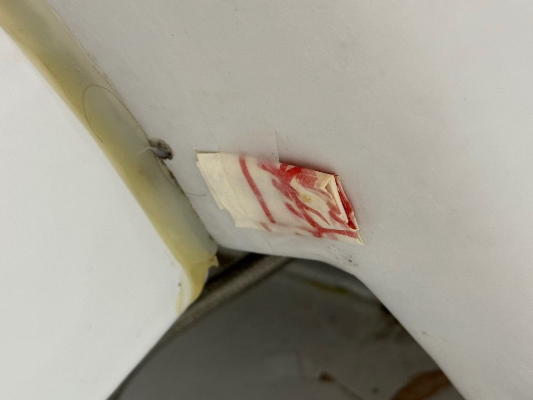 한달 전 이사한 투룸입니다 화장실 청소를 하다보니 세면대 밑에 사진처럼 부적이 테이프로 붙어있었습니다 보이지않는 곳이라 이제서야 알게 됐는데 내버려 되도 될까요?