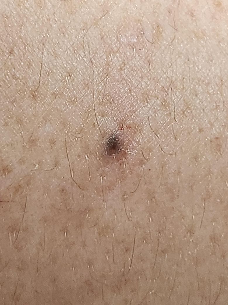 갑자기 점이 생겼는데 이거 피부암인지 봐주실수 있을까요 사진을 보면 검정색 좀이 나왔는데 피부암이 아닌지 걱정이 되어서 올려법니다