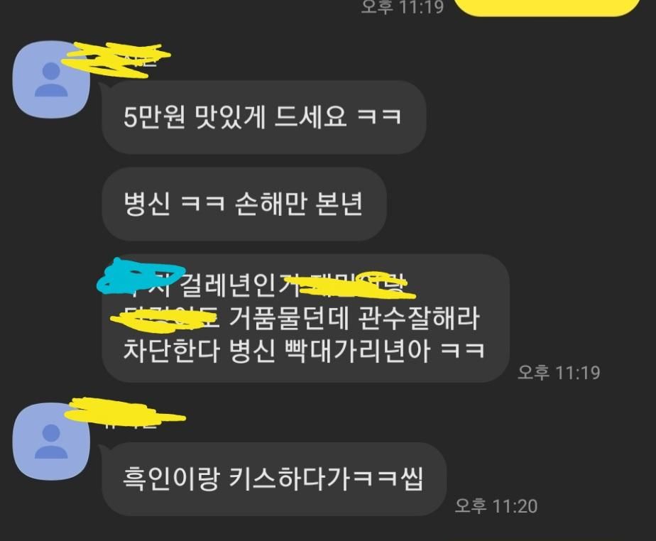 노란색 가린부분은 자기 지인들 이름이고