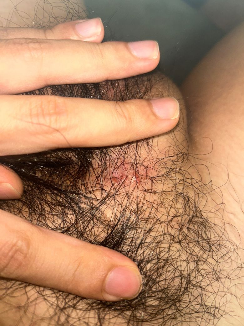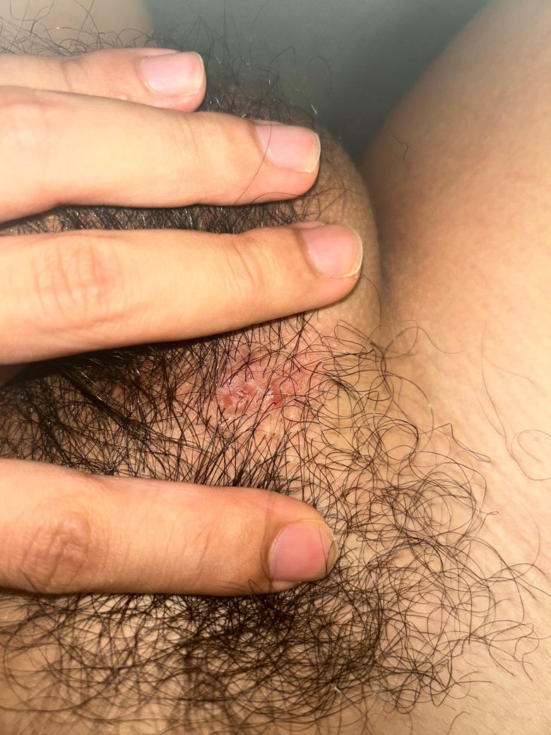 어제부터 음부에 뾰루지처럼 뽈록하게 뭐가 나서 간지러워서 살짝 긁었는데 오늘보니 사진처럼 되어있었습니다.. 지금도 약간 가려워요ㅠ 혹시 이거 매독증상일까요..?